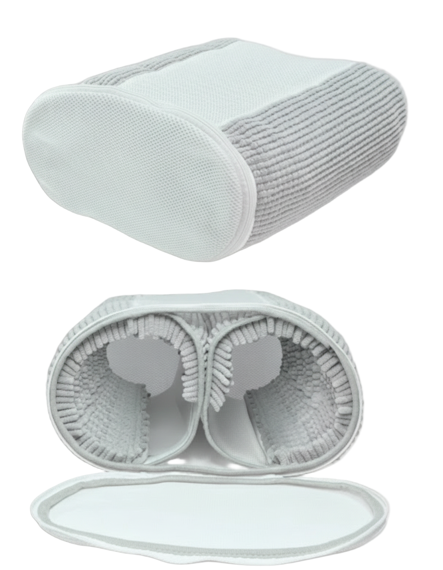 Šis modernizētais apavu mazgāšanas maiss ļauj vienā reizē nomazgāt veselu apavu pāri, jo tam ir divi atsevišķi nodalījumi. Vairs nav jālieto divi maisi kā iepriekšējos modeļos - viss notiek vienā, ērtā risinājumā.